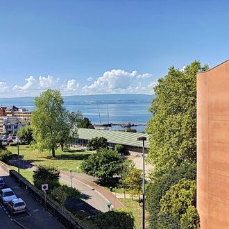 Appartement traversant T4 de 90,37 m² au 2ème étage avec ascenseur, à proximité immédiate du centre disposant d'une vue lac. Composé comme suit : une entrée, un dressing, un séjour, 1ère chambre orientée Nord avec un accès balcon, 2 chambres orientées Sud avec un accès balcon, une cuisiné séparée et équipée, une salle de bains, un WC indépendant. Ce bien est agrémenté d'un garage et d'une cave en sous-sol. Un bien lumineux VENDU en Exclusivité par DECORDIER immobilier Thonon
