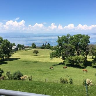 Dans une petite copropriété de 2006, sur les hauteurs d'Evian, proche des écoles et du collège, cet appartement est composé d’une cuisine équipée ouverte sur séjour avec accès jardin de 180m² exposé sud/ouest, 2 chambres, une salle d’eau et d’un WC indépendant. Un garage de 46m², un parking et une cave viennent compléter ce bien. A proximité des commerces, des bus urbains et du golf, sans aucuns travaux et avec un accès facile. Une EXCLUSIVITE DECORDIER immobilier.